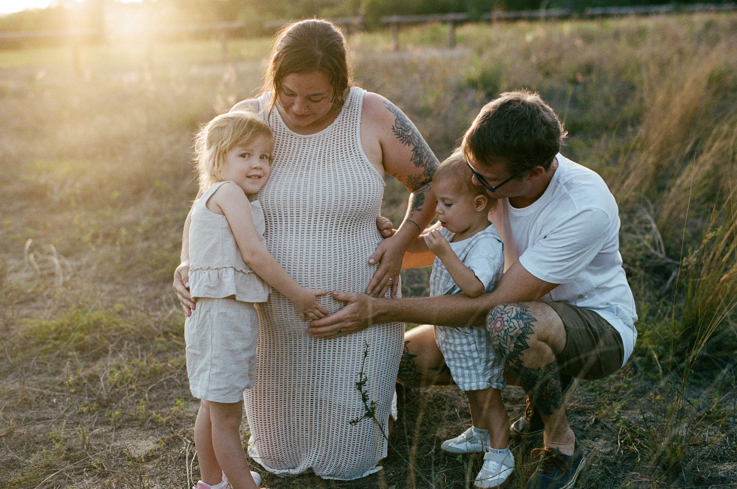 A relaxed outdoor family photography session captured on 35mm film. Timeless, nostalgic images that document real family moments in an honest, unposed way.